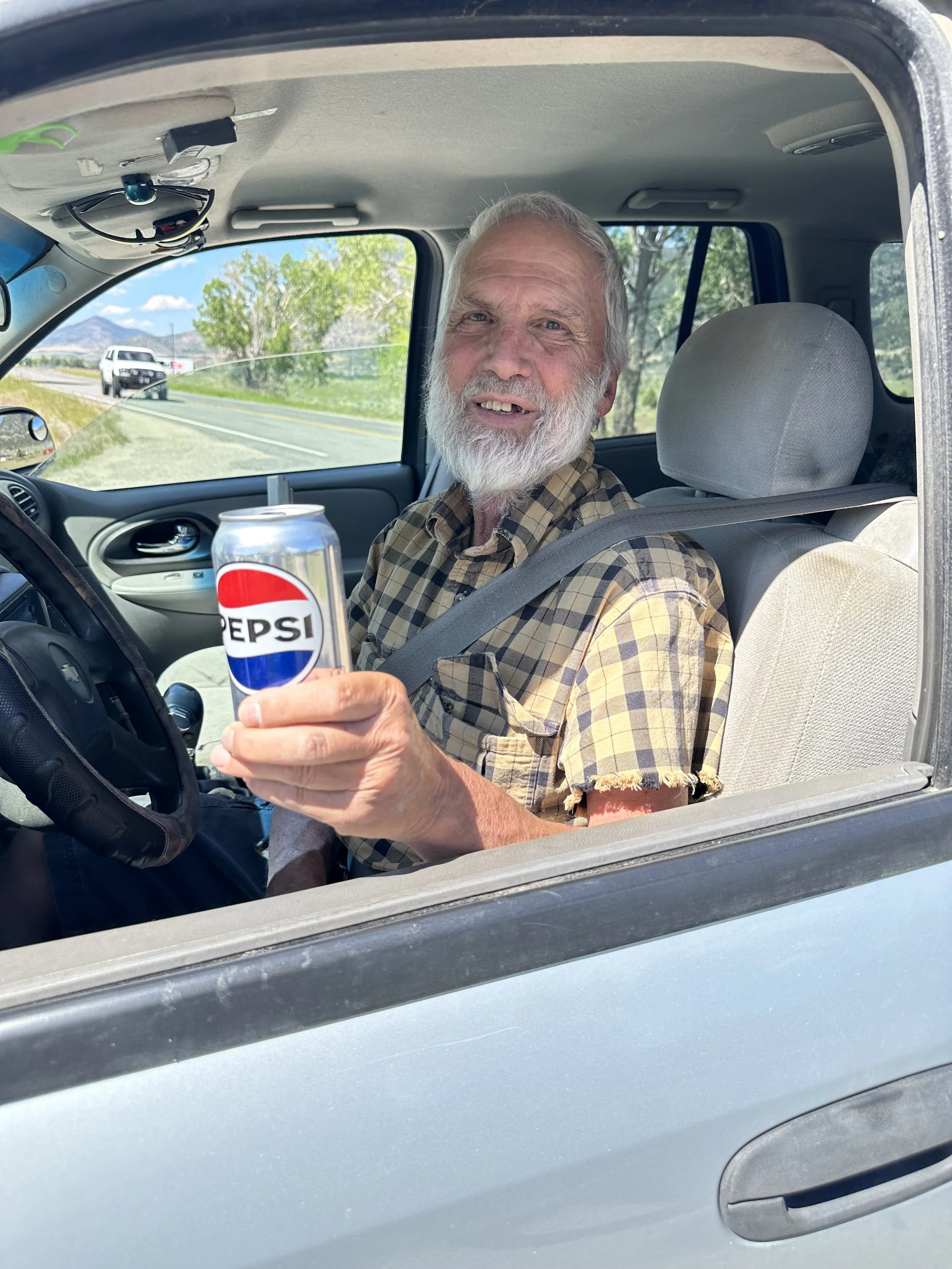 More Trail Magic. This nice fellow saw us sitting at the edge of the road resting and he stopped to give us a cold soda and four granola bars.