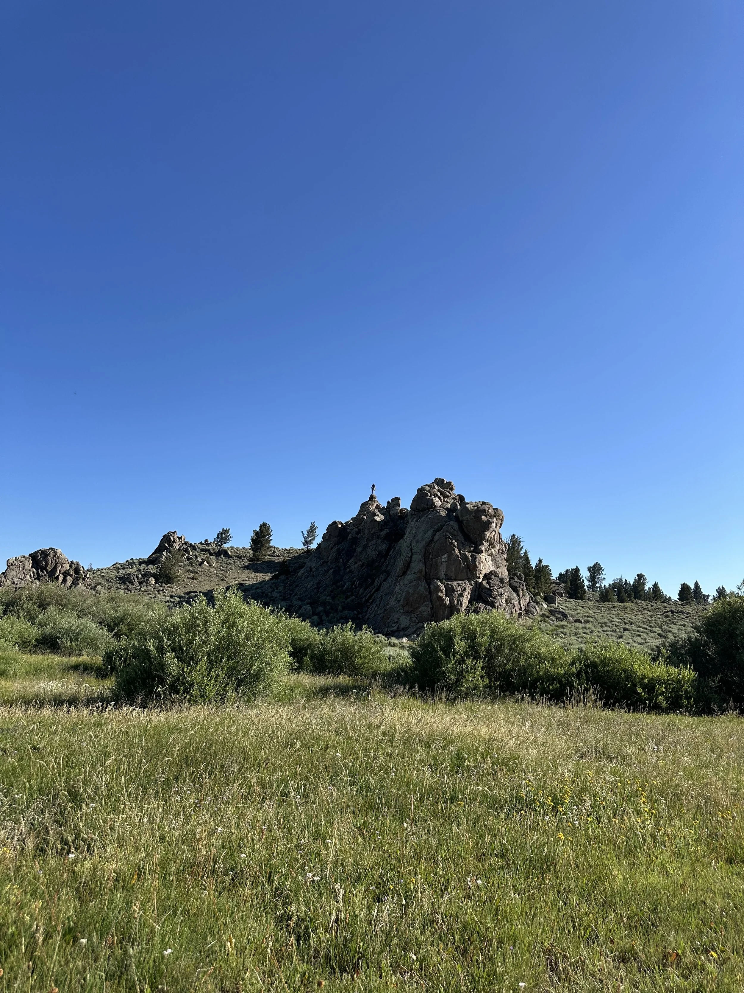 Today we entered Wyoming’s Great Basin, an area hovering around 7,000 feet in elevation and 4,000 square miles. Apparently water that falls on this area doesn’t flow to any ocean, which would make one think that it’s wet, but no. It’s the driest place we’ve been with only a few water sources in our 140 mile journey through it. Also, no vegetation over a foot tall, no shade, no people, and beside the actual road we traveled and one oil field, no sign of civilization. For a 140 miles!