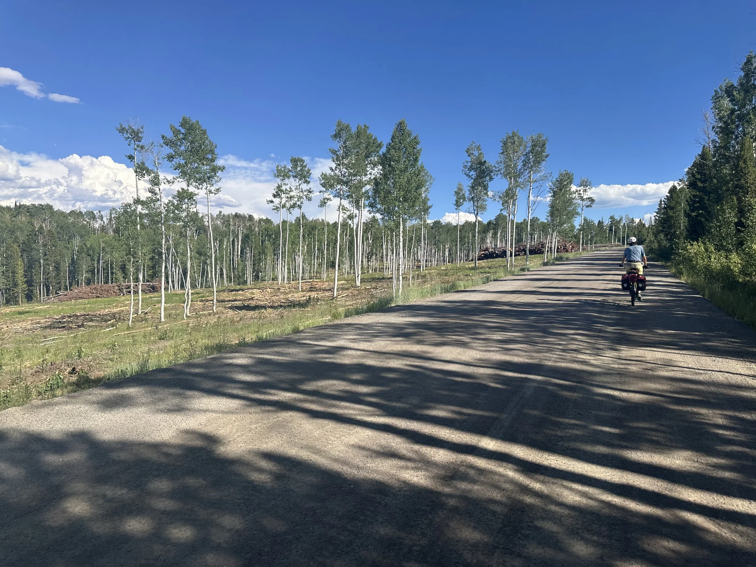 Finally back into the trees. This is an aspen forest, and we think the forestry service is cutting down all the pines that are competing for space.