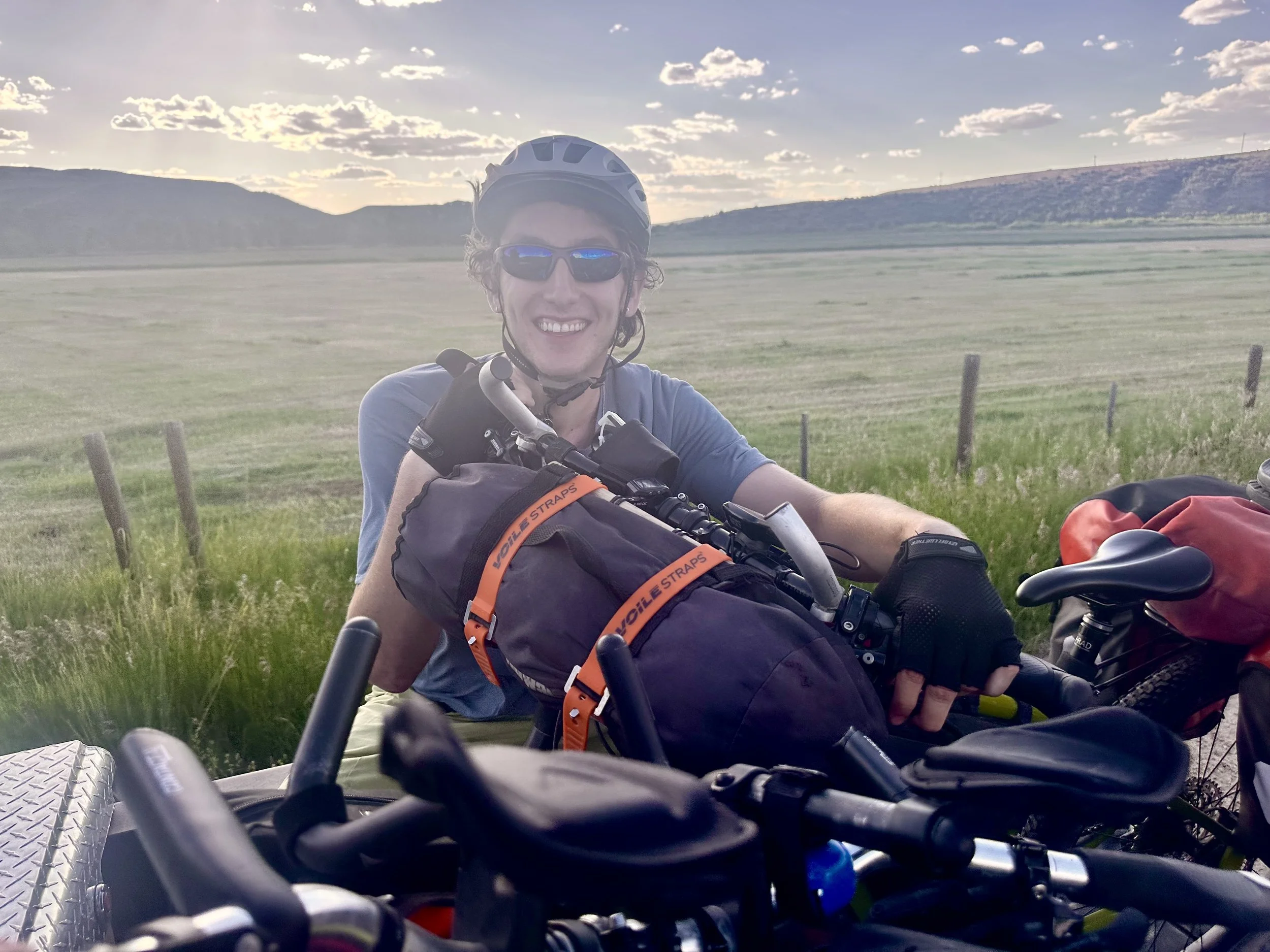 We had another 12 mile climb on dirt roads to reach the Brush Mountain Lodge. After 74 hard miles I was super tired, but Max was my savior. He asked a passing pickup truck for a ride and he happily agreed! We loaded up and enjoyed an exciting open air ride to our destination for the day.