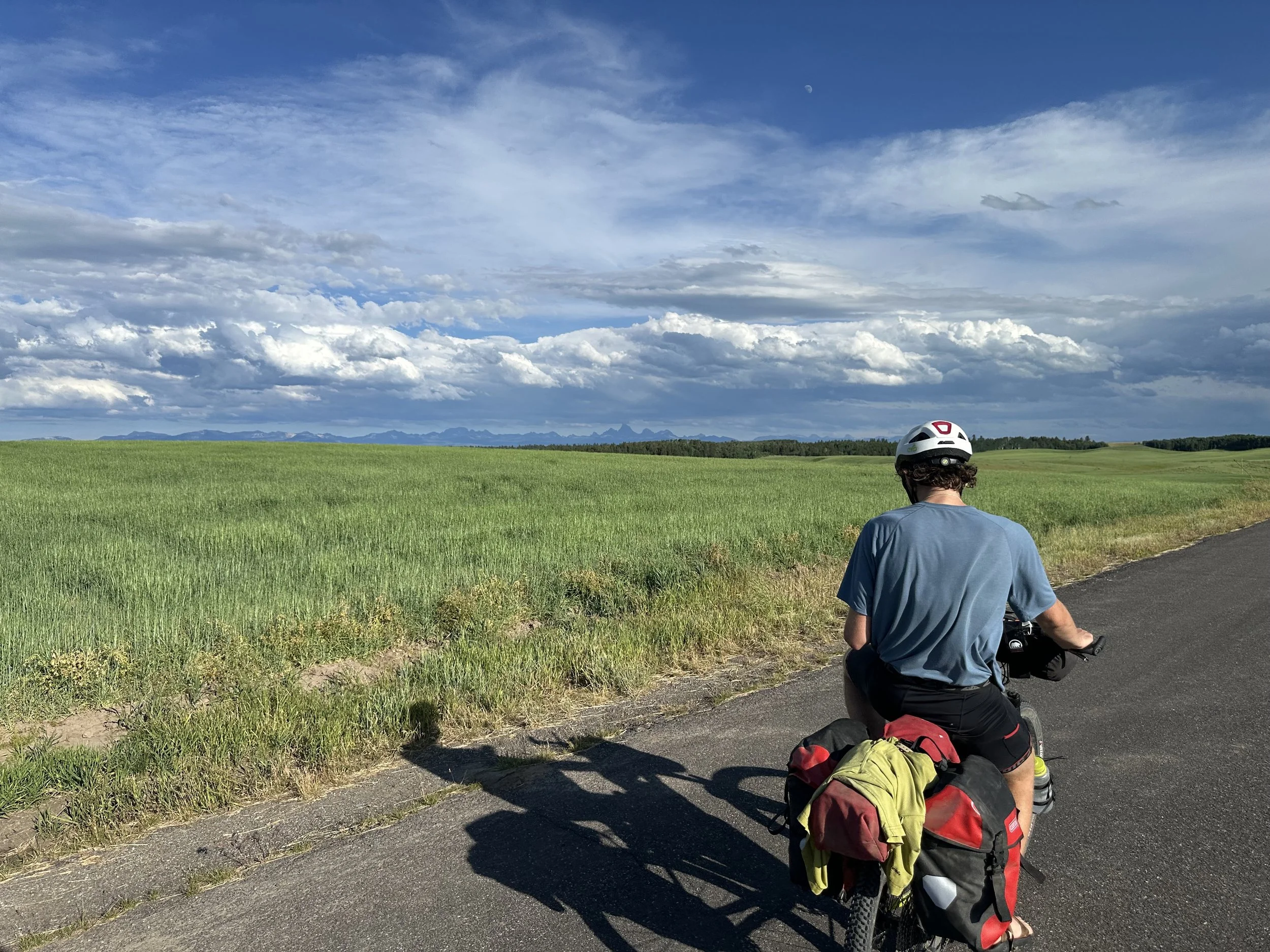 Our first glimpse of The Tetons, from the west. Tomorrow we will ride along the eastern shore of Jackson Lake.